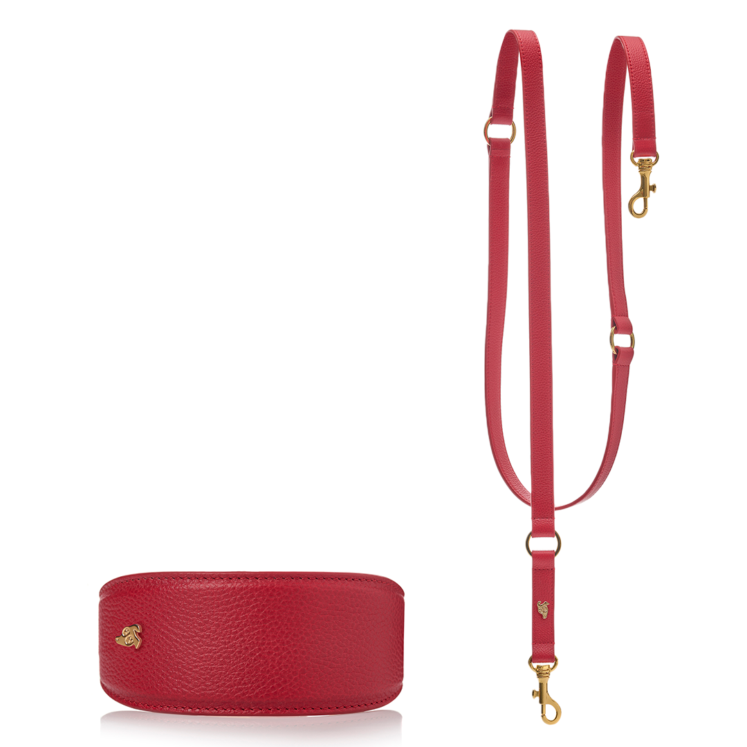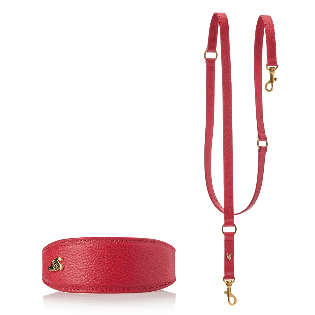 It's a match! Add a touch of sophistication to every walk with the matching Spicy Red leather dog collar and leash.