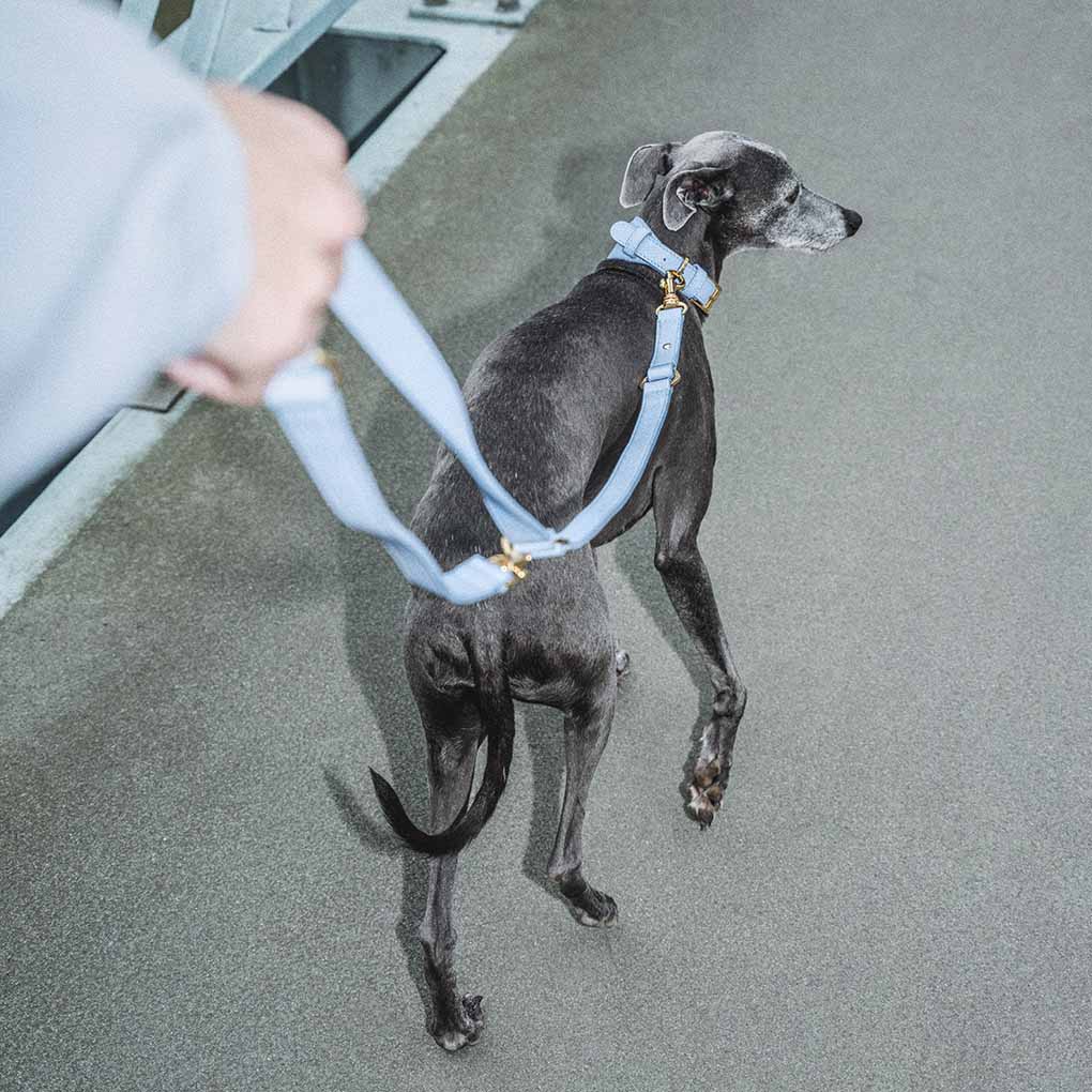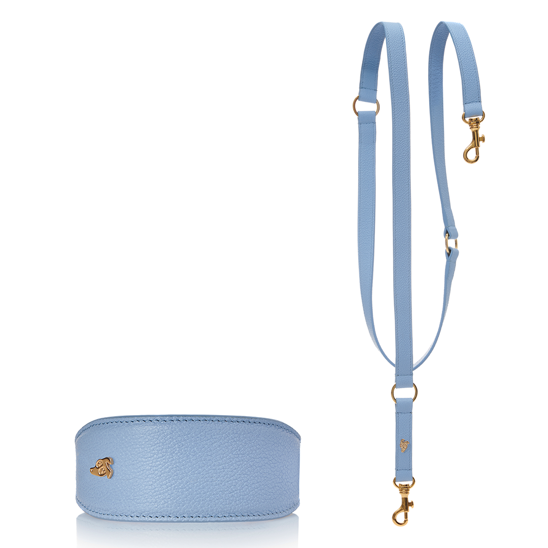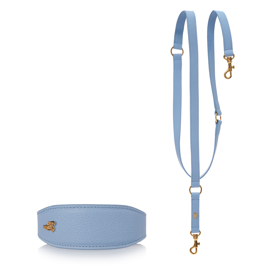 It's a match! Add a touch of sophistication to every walk with the matching leather dog collar and leash in Ciel Blue.