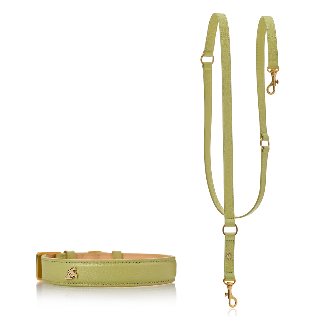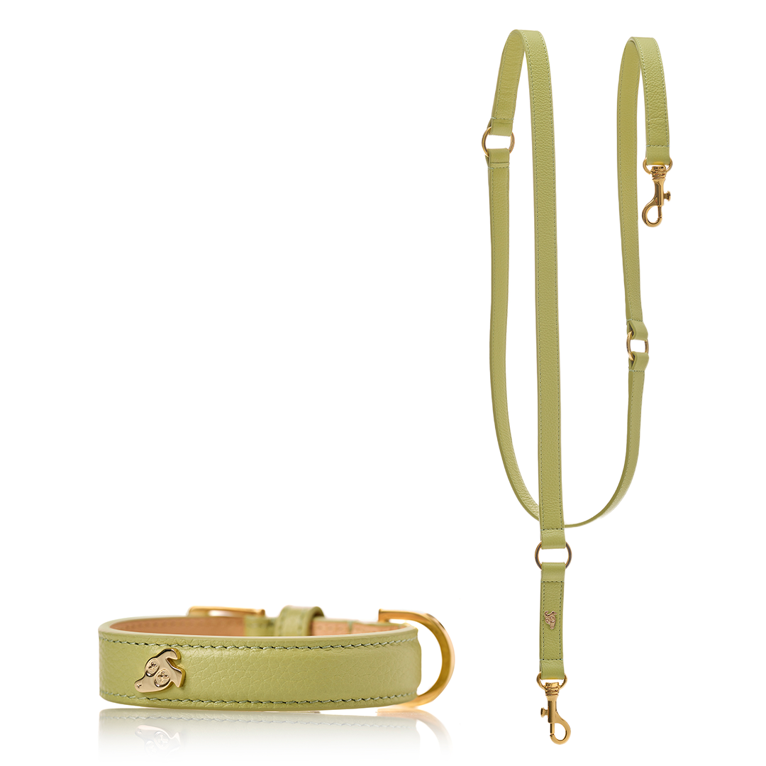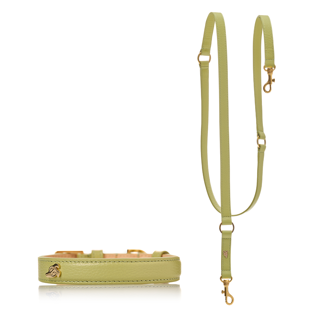 It's a match! Add a touch of sophistication to every walk with the matching Spring Green leather dog collar and leash.