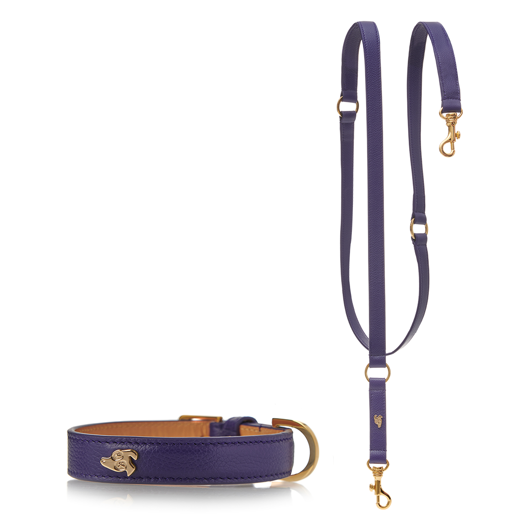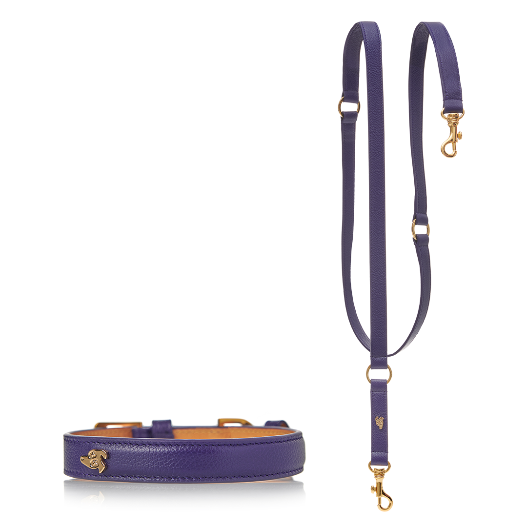 It's a match! Add a touch of sophistication to every walk with the matching leather dog collar and leash in Eggplant Purple.