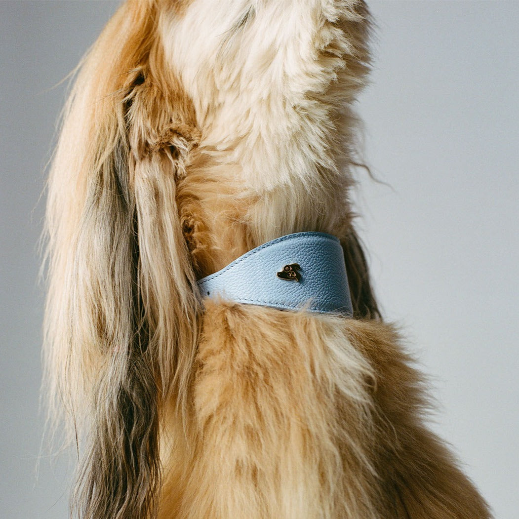 Leather Dog Collar (for Greyhounds) - Ciel Blue