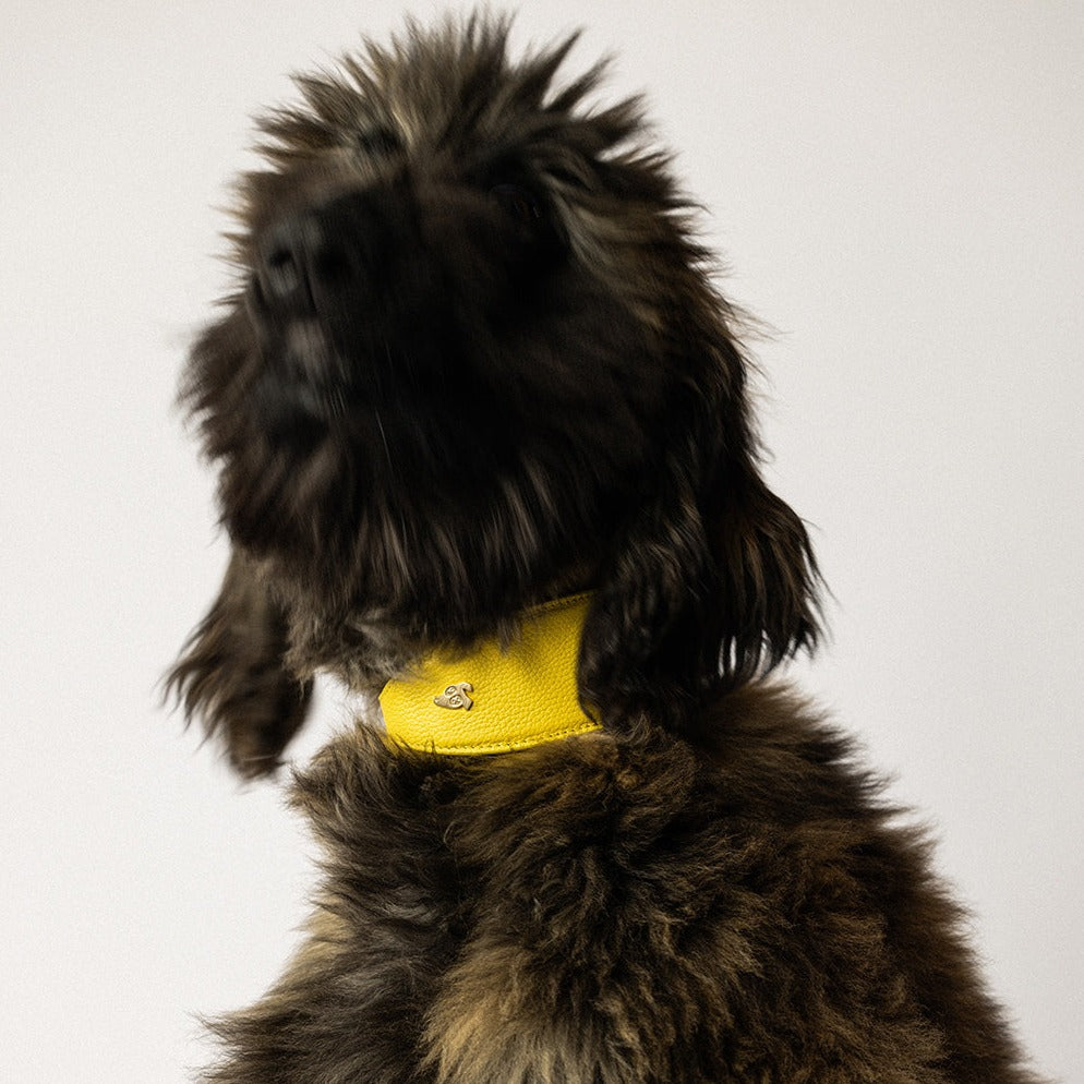 Leather Dog Collar (for Greyhounds) - Lemon Yellow