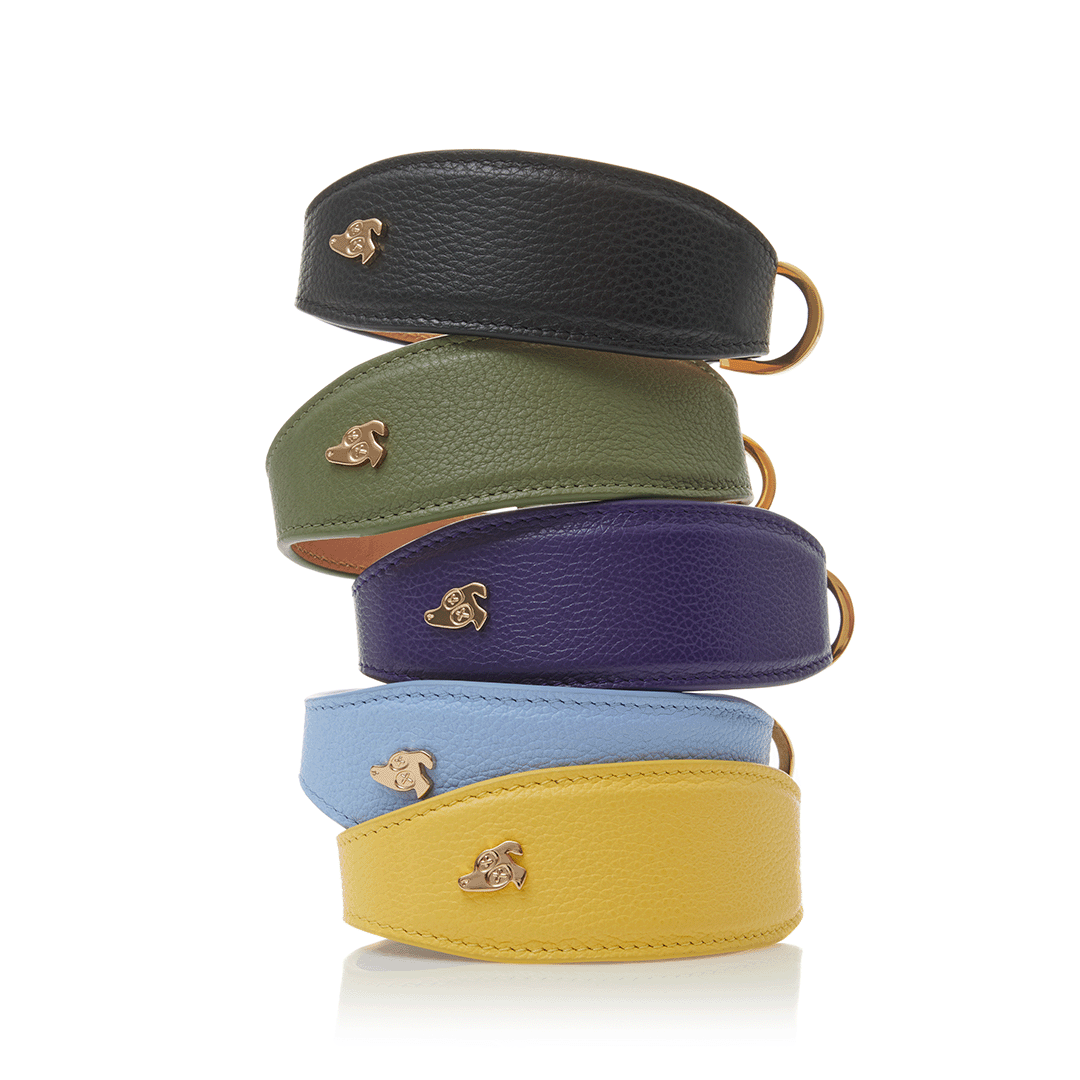 Our small grained leather dog collars are handcrafted in Florence from the highest quality Italian leather and have gold-plated, stainless steel hardware for a luxurious look and feel with high durability.