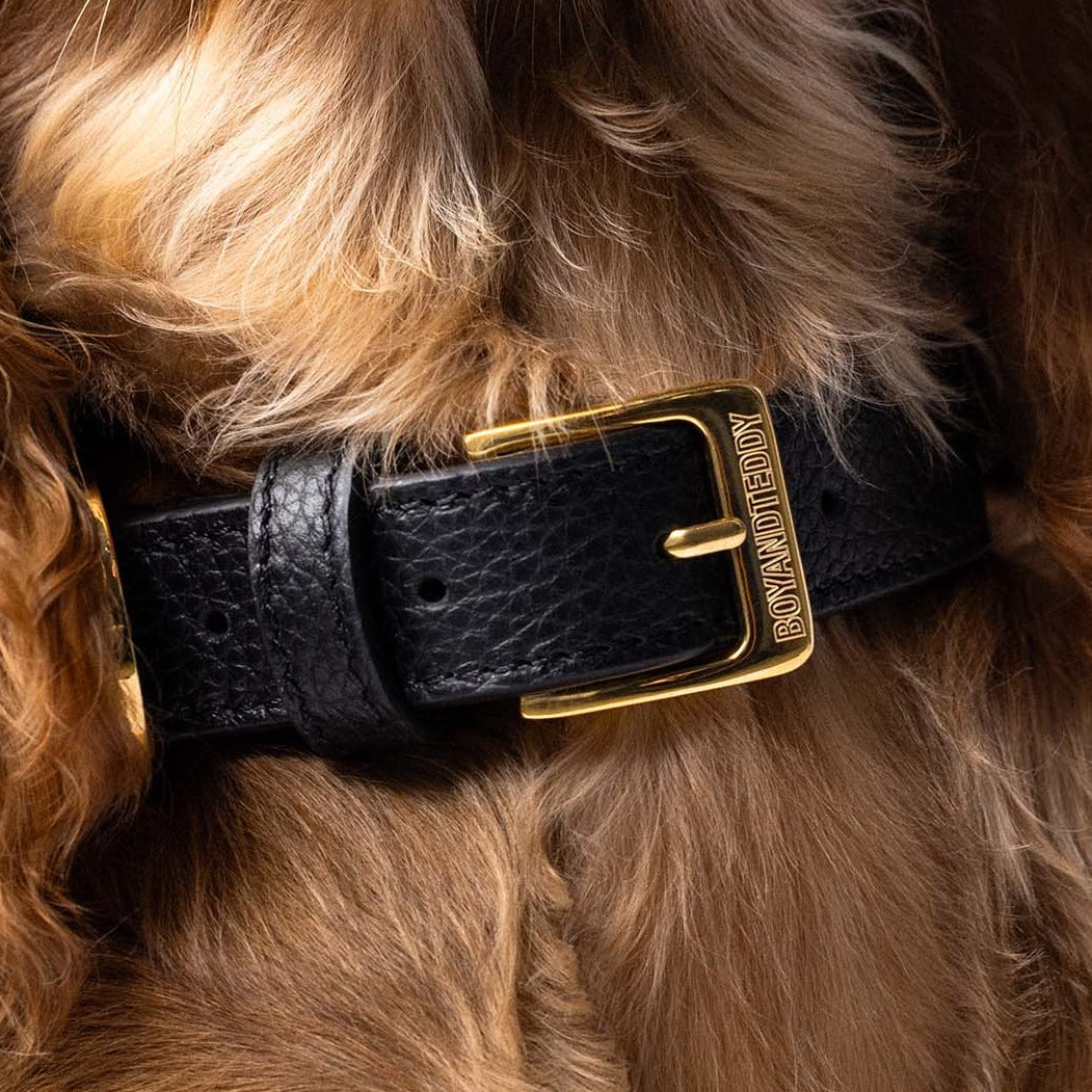 Our small grained leather dog collars are handcrafted in Florence from the highest quality Italian leather and have gold-plated, stainless steel hardware for a luxurious look and feel with high durability.