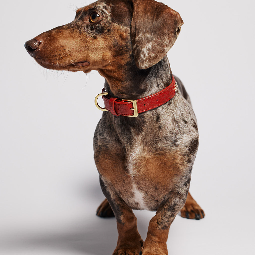 Our small grained leather dog collars are handcrafted in Florence from the highest quality Italian leather and have gold-plated, stainless steel hardware for a luxurious look and feel with high durability.